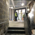Things are finally starting to take shape on the new ‘link building’ at Stationers Hall. The staircase is due to be completed this week and we can’t wait to be able to walk around the new spaces like future guests rather than via the scaffold. A major part of this project was to rationalise the different levels in the neighbouring blocks and improve accessibility for visitors. The very modern staircase, designed in collaboration with Canal Engineering, will be softened with timber treads and handrails, matching the timberwork throughout the rest of the building. Find out more about this project here.