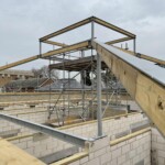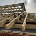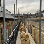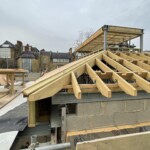 The brickwork at Royal Hospital Chelsea‘s new Activities Space has progressed and the custom ‘special’ bricks, replicating those of the existing Hobbies Building, have been laid. These bricks would traditionally have been cut and rubbed into shape using very soft red bricks. The new bricks, however, have been hand made using custom moulds. The roofs have also progressed with the timber rafters and noggins having been installed over the hall space.