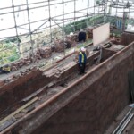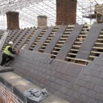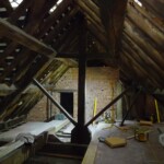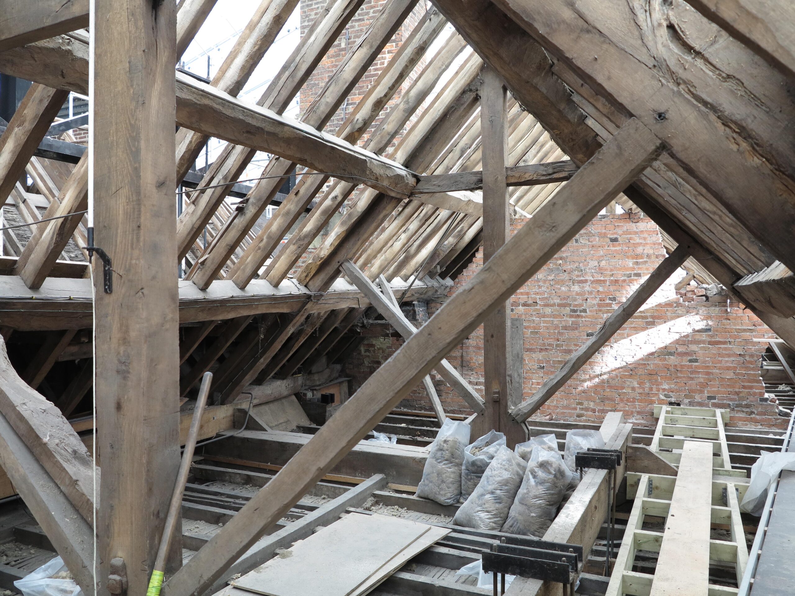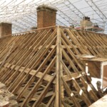 Roofing works are almost complete at our project at Radbourne Hall, Derbyshire. The images below document the huge amount of work done to repair this historic roof using age-appropriate techniques and materials. Defective lead-sheet was removed and re-sand cast using traditional techniques. Interesting, handprints and signatures from the previous lead workers were found during the project and have been reinstated in the new roof. Thankfully the work was completed under the protection of a temporary scaffold roof to keep the elements out and prevent any water damage to the historic interiors below. Click here to find out more about this project.