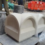 The new stone finials have arrived on site for the re-built chimneys. These delightful finials, shaped in Soane’s iconic four-sided dome motif, will sit on either side of the rebuilt stack. The stable block lost many of its chimneys following damage sustained during WWII and we have worked closely with the original drawings to replicate the lost elements.