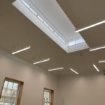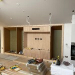 The joinery and lighting installation has begun at RHC. We have designed a number of bespoke timber units to house AV equipment, books and other general storage, using chunky plywood to reference the window reveals and architraves elsewhere in the building. Find out more about the Activities Space project here.